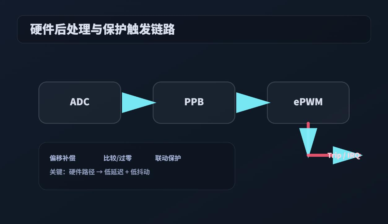 PPB 在链路中的位置:ADC 输出→硬件后处理→事件联动,缩短保护路径。